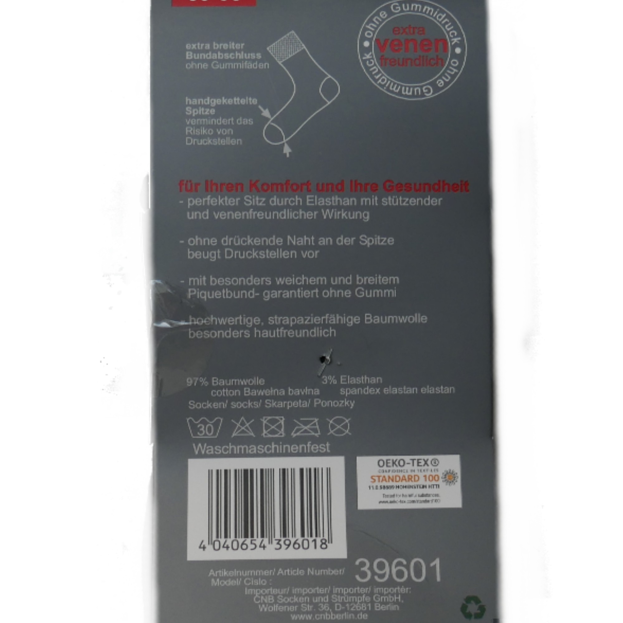 Hersteller: CNB Socken und Strümpfe GmbH, Wolfener Straße 36W, D - 12681 Berlin – www.cnbberlin.de