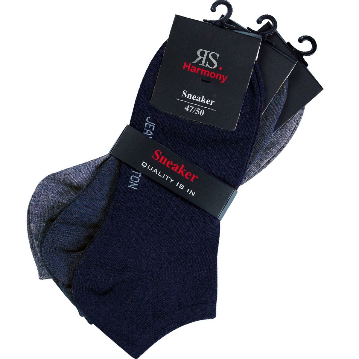 3 Paar Herren Sneakersocken in Jeans-Farben. Die Socken sind durch den hohen Baumwollanteil atmungsaktiv, Ferse und Spitze sind verstärkt, weiche Qualität und eine handgekettelte Fußspitze ohne drückende Naht. Versandkostenfrei innerhalb Deutschlands. Artikelnummer RS31053